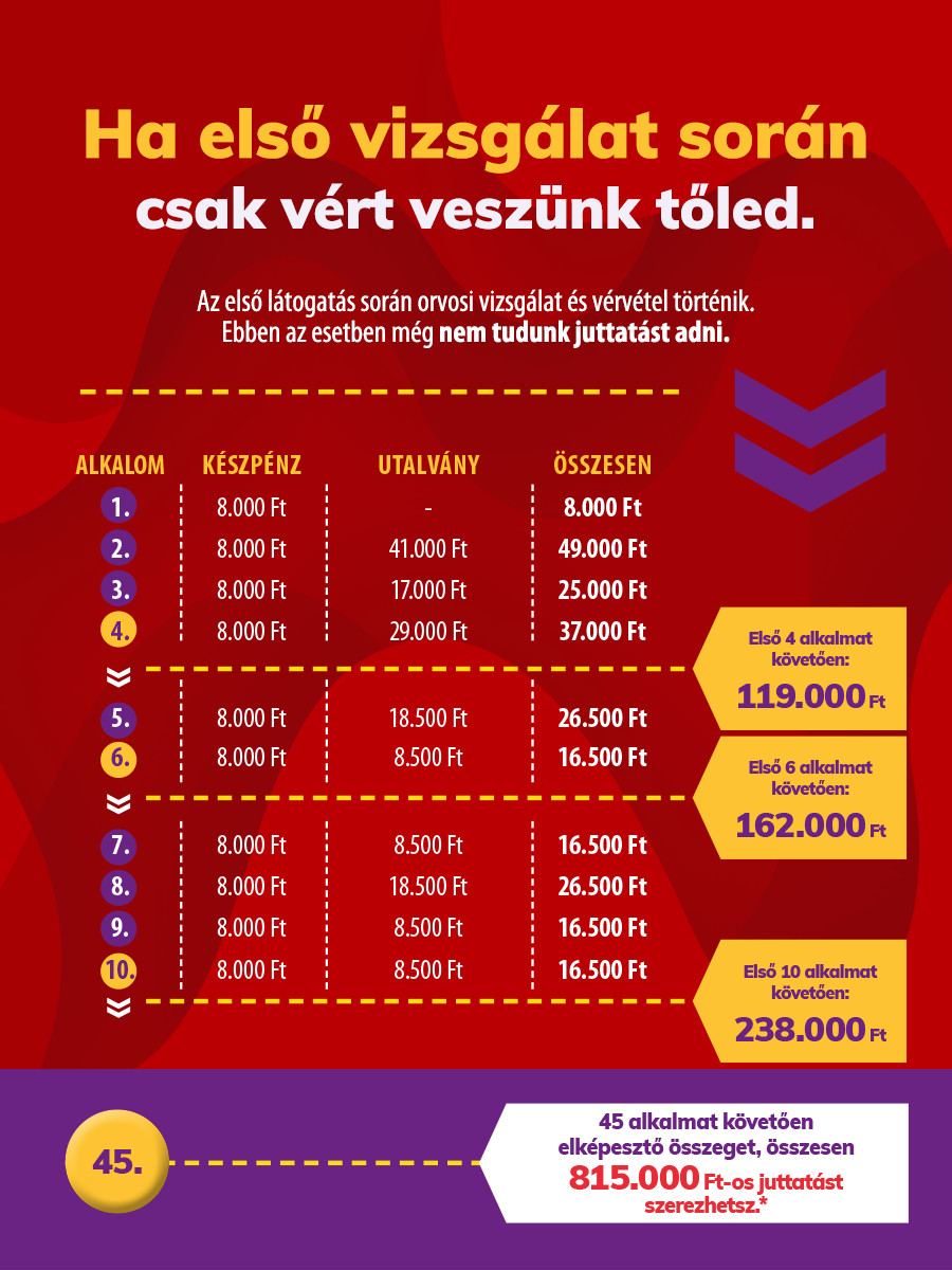 Ha első alkalommal plazmát adsz le nálunk a szerológiai vizsgálathoz, azért 8000 Ft-ot tudunk adni. *